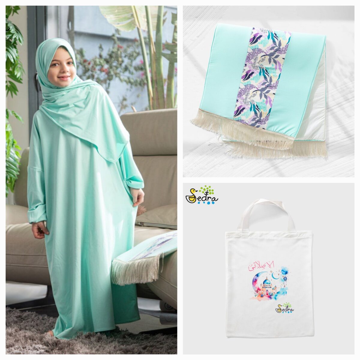 إسدال صلاة خامه قطن 100 جيل معها سجادة مبطنه وشنطه
