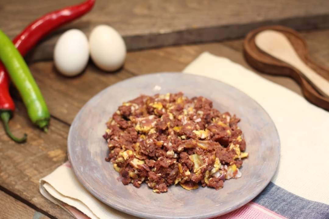جاهز انك تاخدي منه معلقه وعلي طاسة وعليهم بيض ورشة ملح وفلفل والف هنا