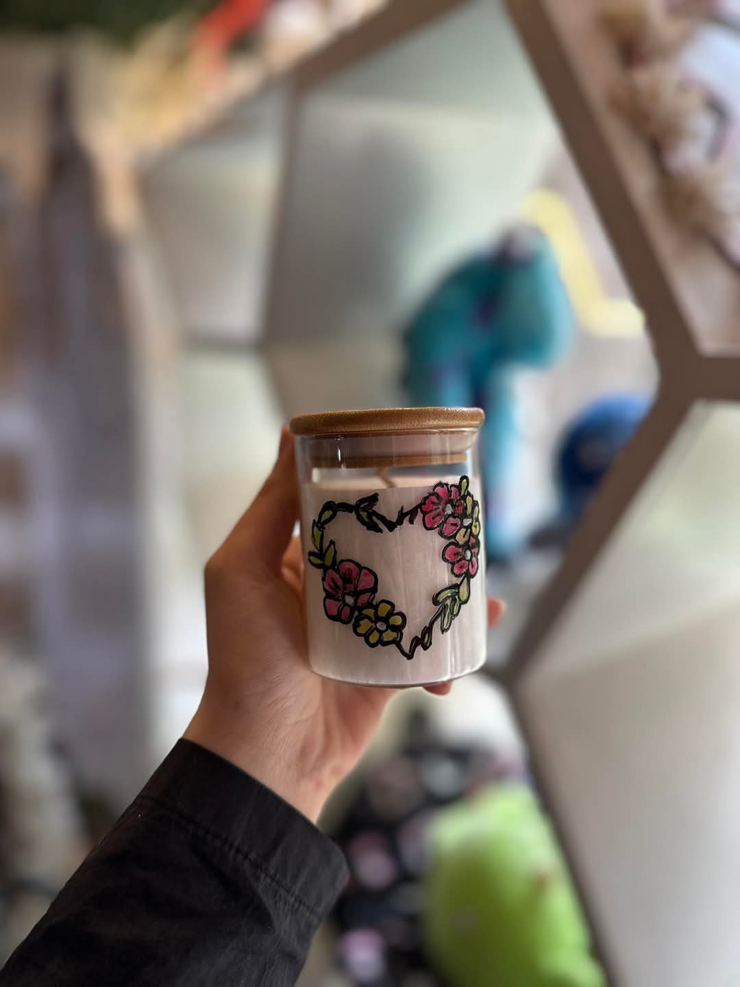 شمع معطر بجار مرسوم حسب اختيارك 🩷