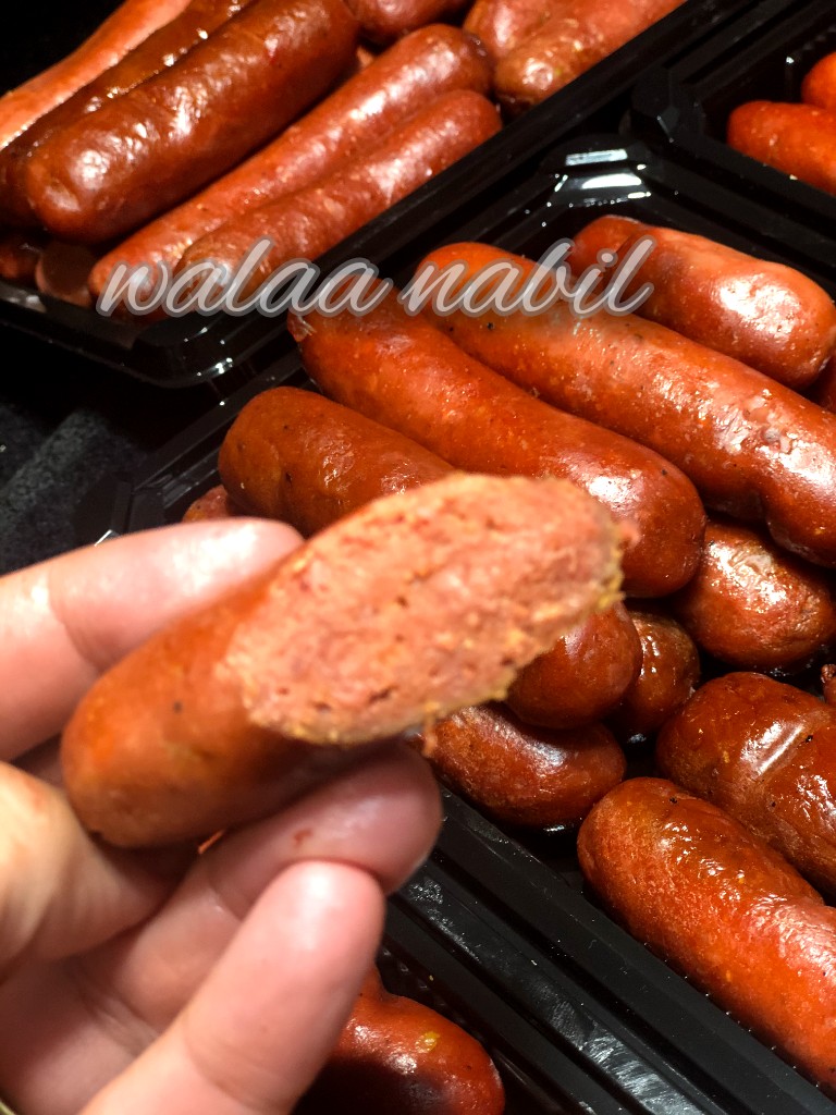 سوسيس لحمة بيتي مدخن سموكد لحمة صافي وبهارات ونشا بطاطس ولبن منزوع الدسم جاهز عالسلق دقيقتين ثم يشوح في مادة دهنية لتكملة التسوية
