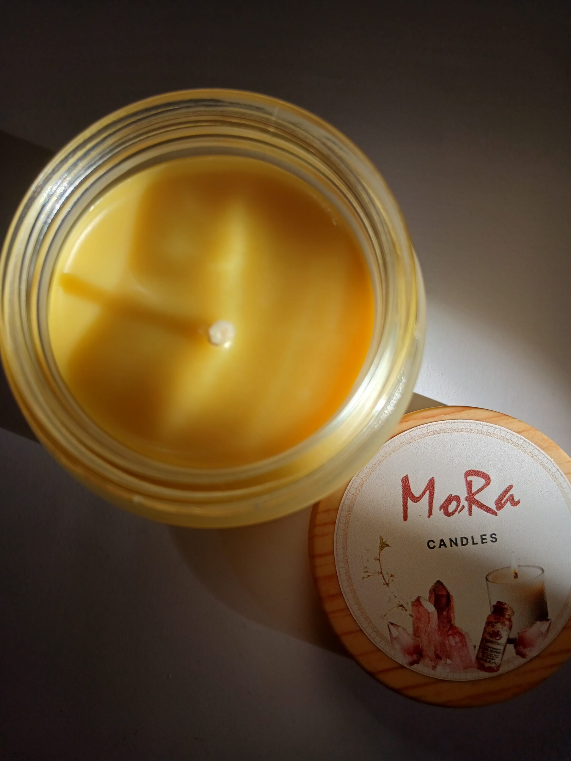 شمعة مساج طبيعية 100% معززة بزبدة المانجو 💛
