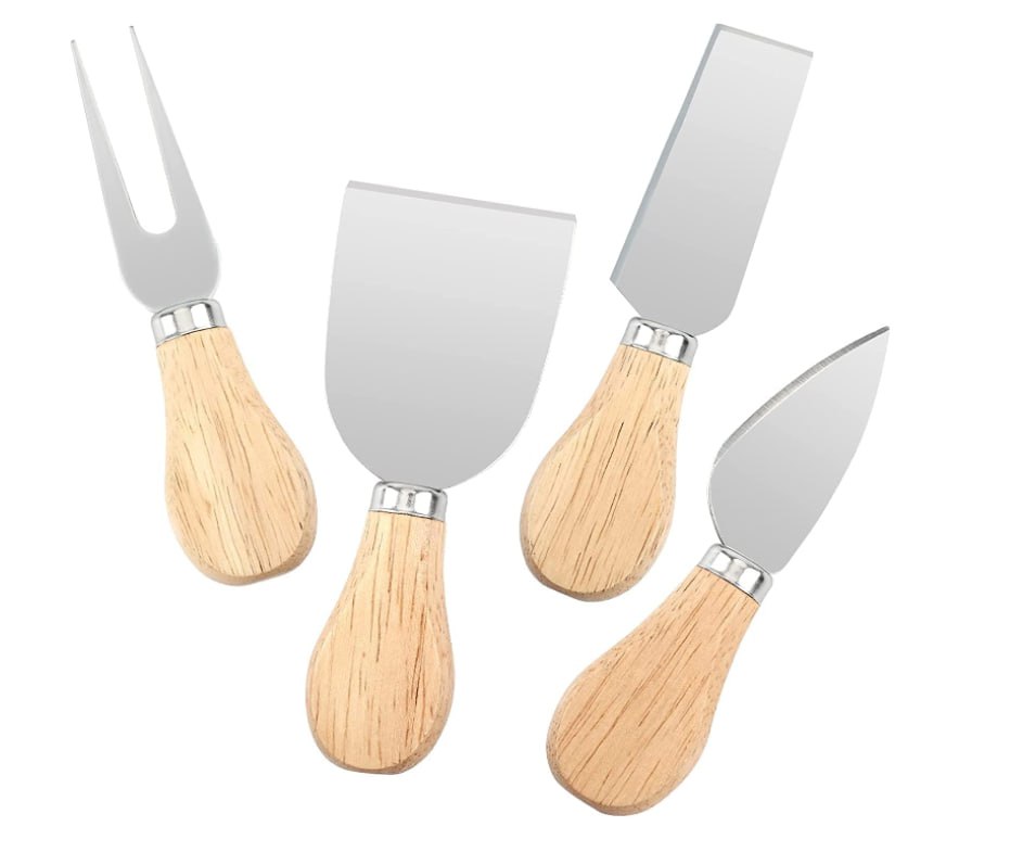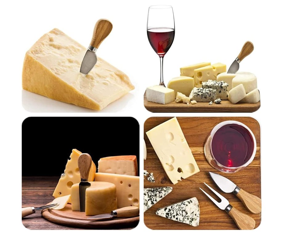 ❤️❤️ طقم سكاكين جبنة 4 قطع استانلس ستيل 😎🧈🧀🍞🥐 طقم لتقطيع الجبنه والمخبوزات بيد خشب مع مقبض خشب البلوط💪💪💪💪💪 مكون من :- 🔴سكين بارميزان 🔴سكين جبنة صلبة 🔴شوكة جبن 🔴سكينة جبنة طريه سكاكين زبده