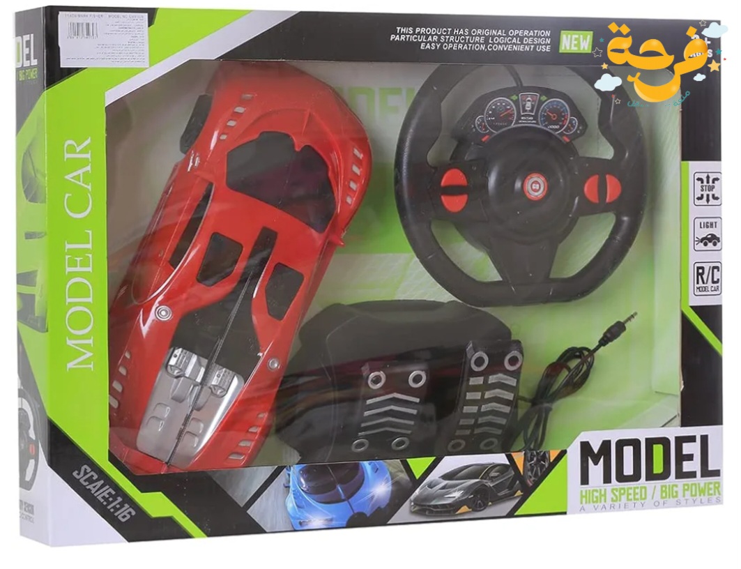 عربية تحكم فى اتجاهات عن طريق ميل عجلة القيادة تحكم فى الاتجاه امام وخلف باستخدام دواسات لعبة تمتع الطفل بقدى عالى من محاكاة الواقع والثقة والاستقلالية