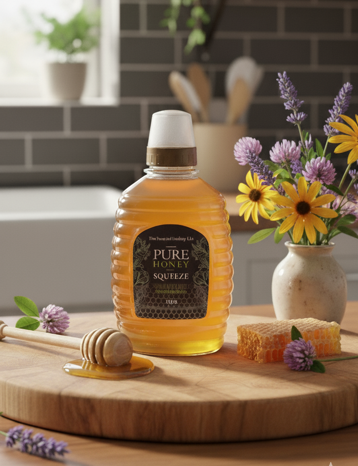 عسل نحل طبيعي 100% نوارة البرسيم بدون اي اضافات مباشر من مناحلنا في عبوة اسكويز سهله الاستخدام