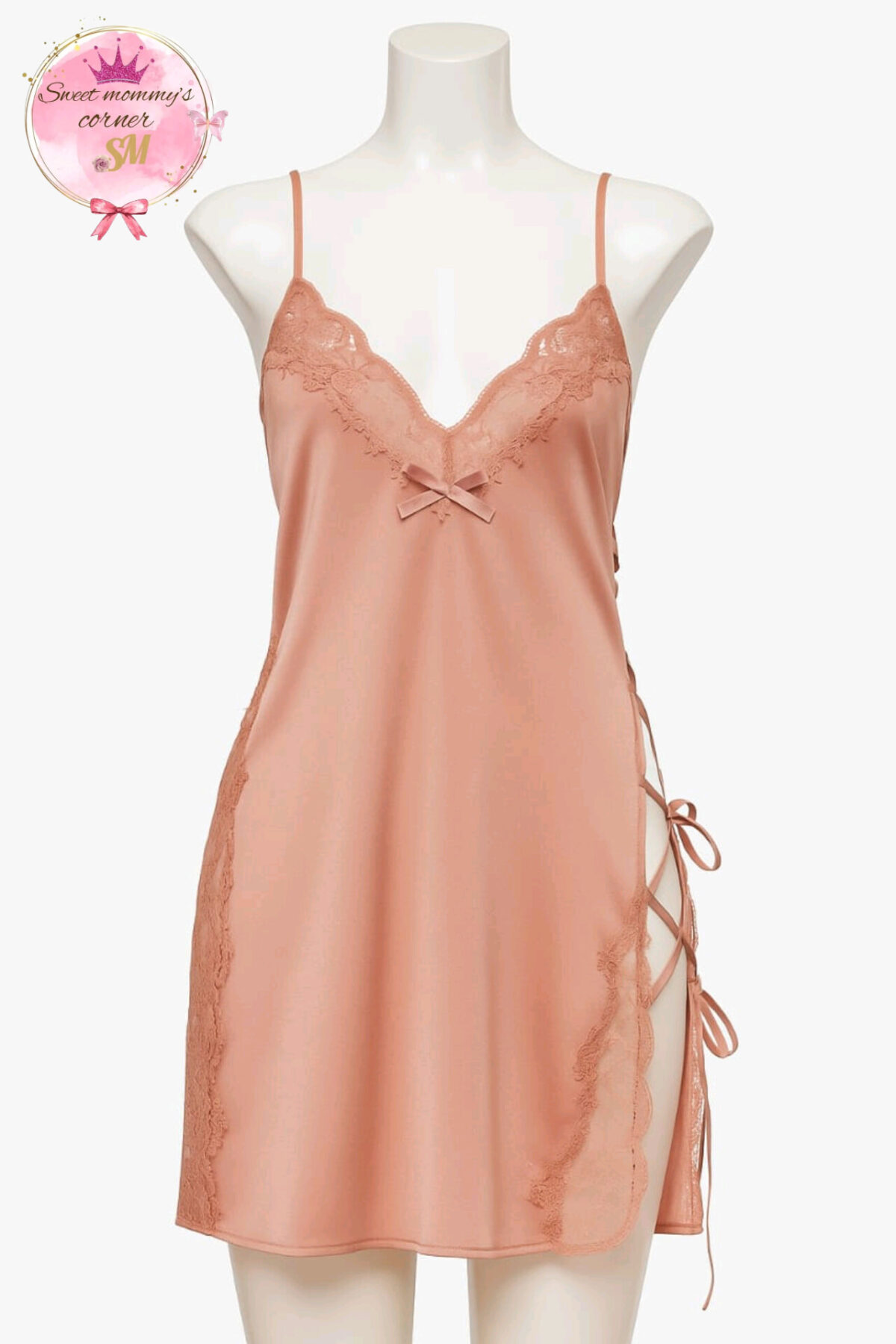 قميص ستان قصير ناعم ومزود بدانتيل من الجناب لتوسعة