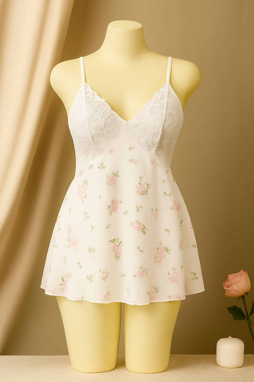 لانجرى ابيض عليه نقوش ورد وردى خامه ناعمة