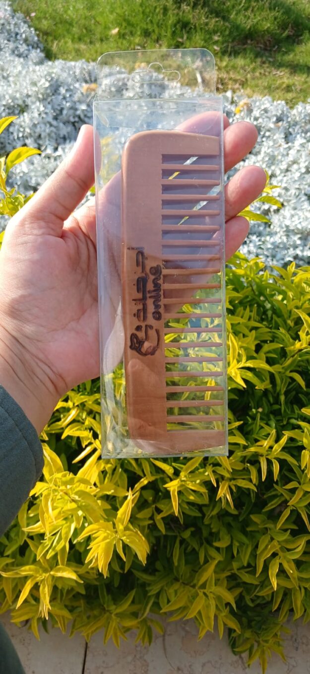 مشط خشبي ينشط الدورة الدموية و يزيل الأتربة إللي فالشعر و يقلل من تساقط الشعر عكس المشط البلاستيك إللي بيولد كهرباء.