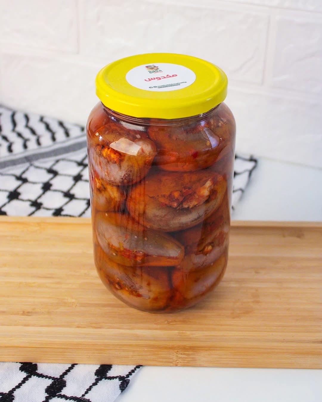مكدوس عبارة عن باذنجان محشي جوز (عين جمل) وفلفل حلو منقوع بزيت سمسم