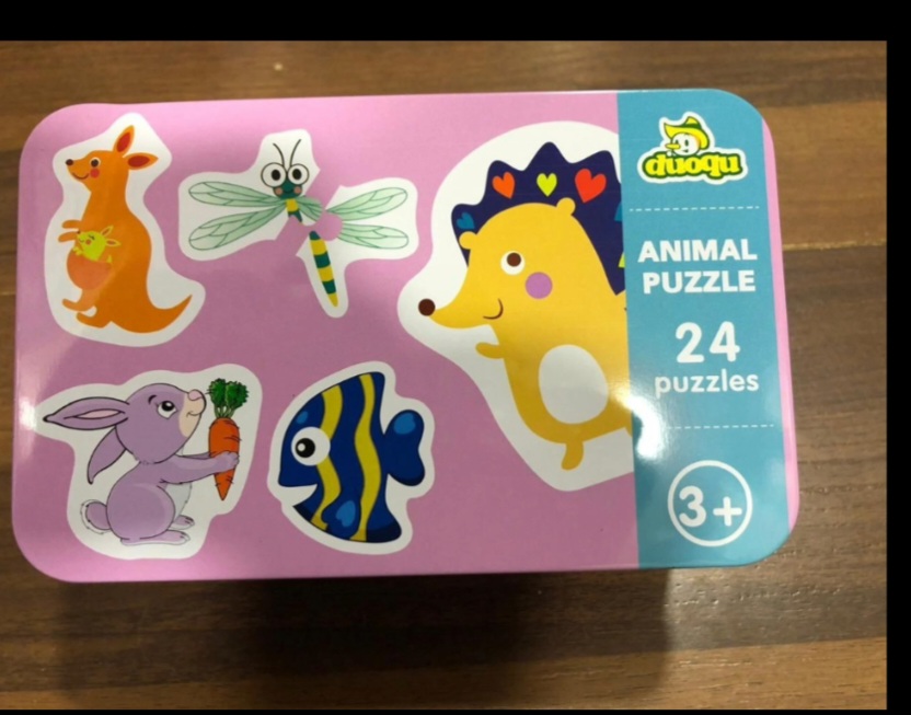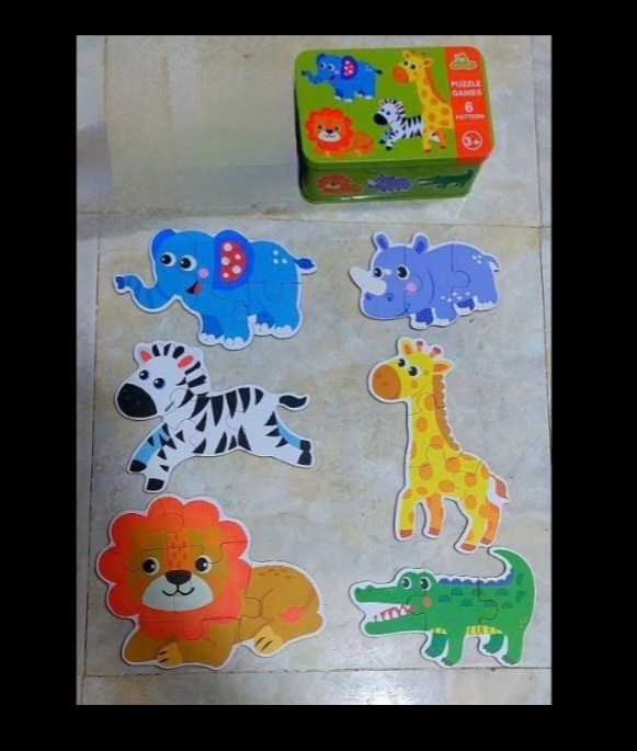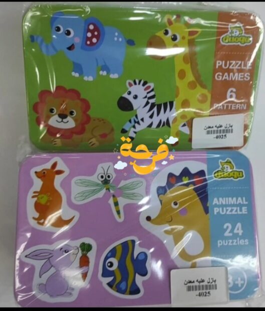 بازل قطع كبيرة في علبه معدن تحافظ عليهم مناسب للاطفال من سنتين او ٤ او ٥ سنوات حسب قدرات الطفل علبة خضرا ٦ اشكال ١٨ قطعة علبة وردى ٢٤ شكل ٤٨ قطعة